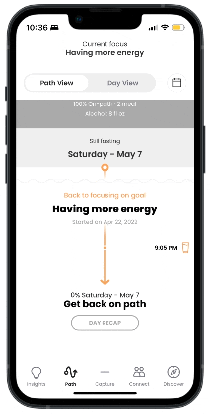 Existing Taberu users can log different items such as reflections, meals, beverages, movements, notes, and measurements through “Capture”. Similar to a journal, existing users can also view a timeline and overview of all the items logged in the past on the “Path” tab.