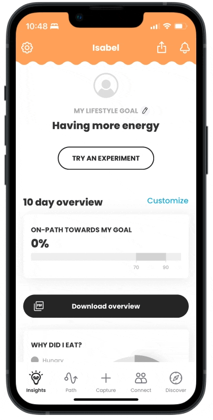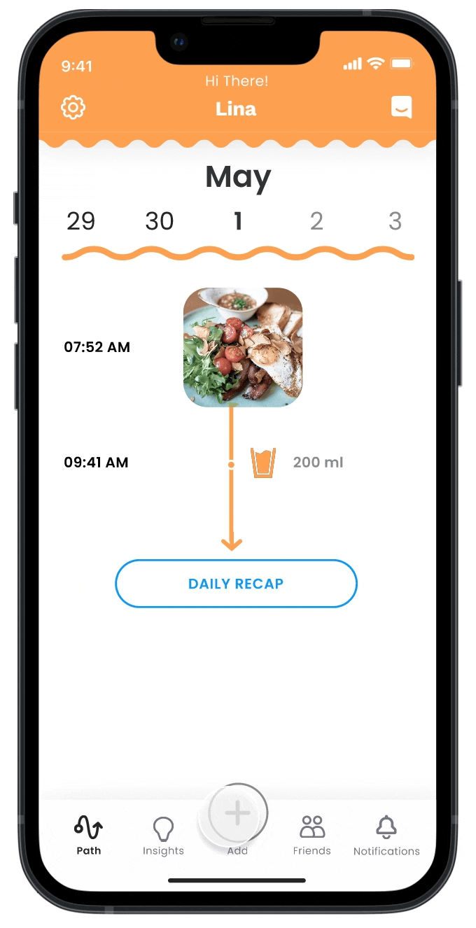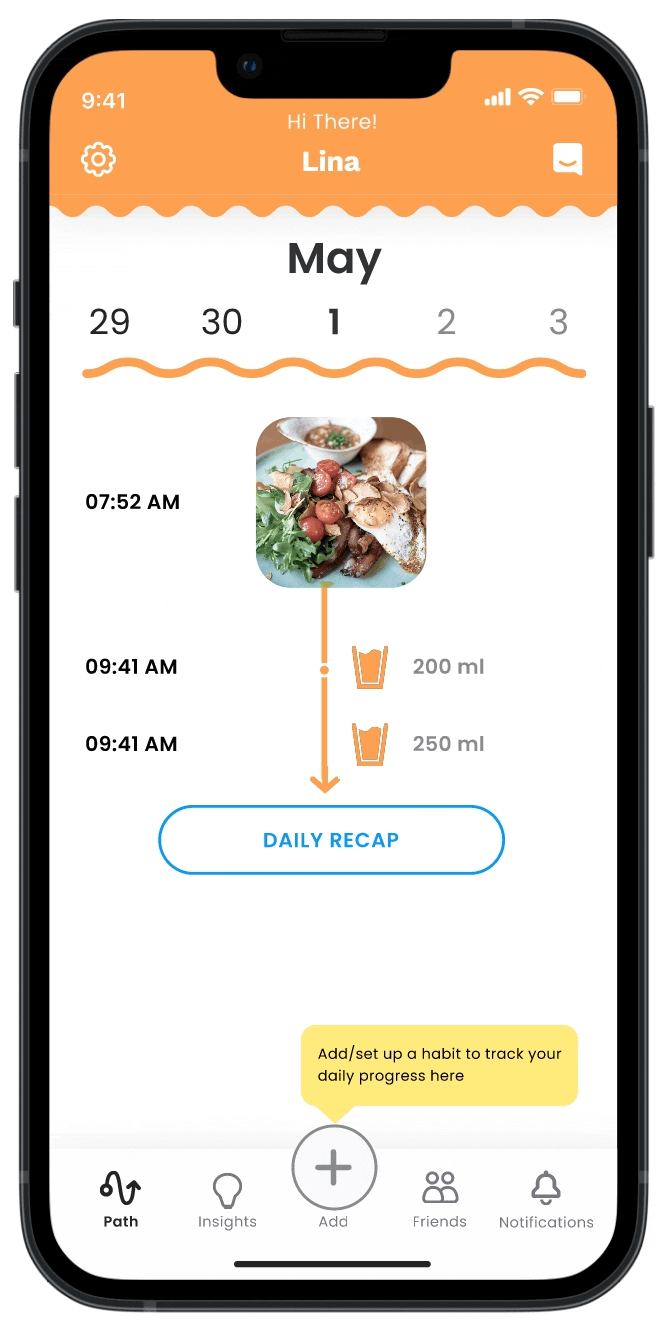- Setting up desired functionalities during the app’s onboarding (e.g. food, water, movements)
