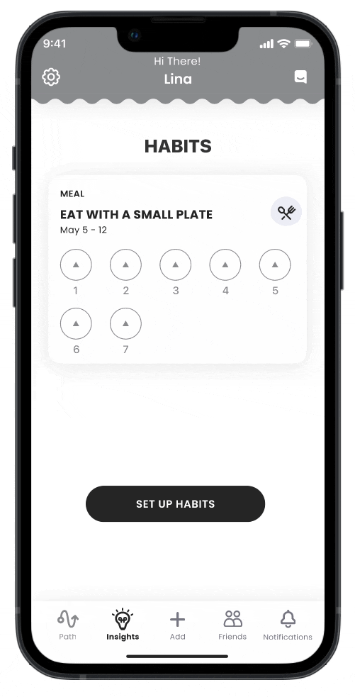 We set the habits tracking entry point on the insights page, with a series of questions to set up a habit.